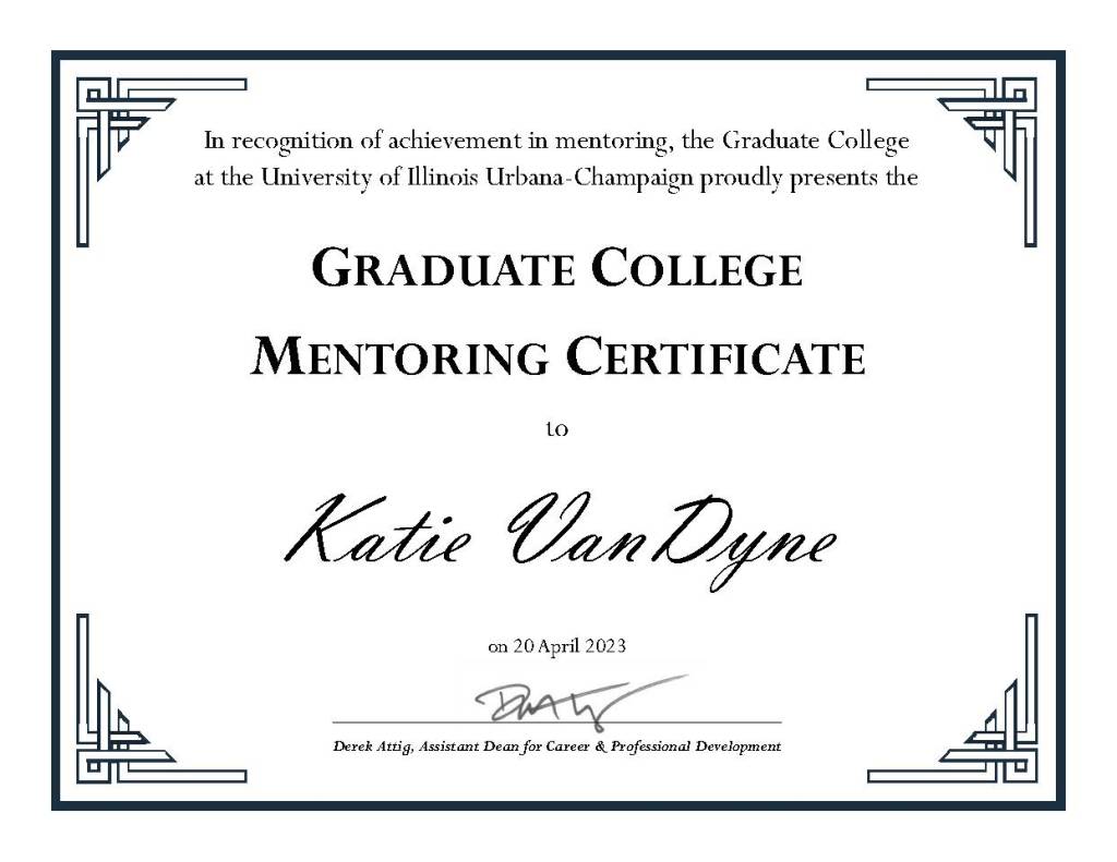 University of Illinois College of Liberal Arts and Sciences Award for Excellence in Undergraduate Teaching for Graduate Teaching Assistants (2023) Here’s an article about the award